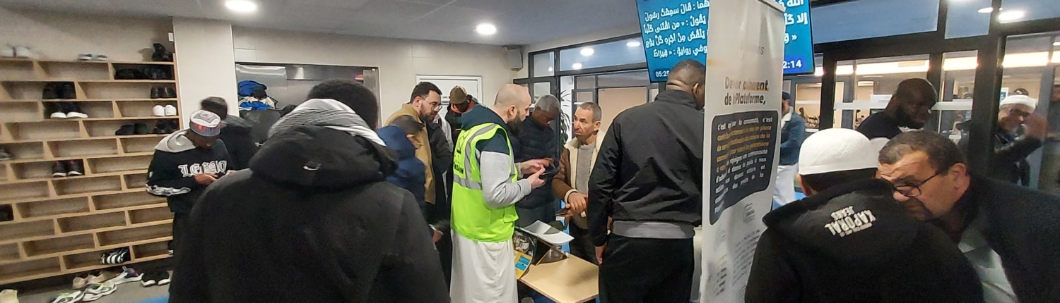 Cette initiative avait pour objectif de rencontrer les musulmans et de présenter les enjeux et les services de la Plateforme qui est à leur disposition, lors de jumu’as, à la sortie de tarawihs ou lors d’assises après l’asr. Autant de moments qui nous ont permis de faire connaissance avec des membres dévoués de la communauté, d’échanger avec eux sur leurs besoins et leurs attentes, mais aussi de présenter les services que la Plateforme propose au quotidien.